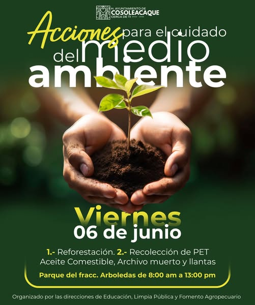 Acciones para el cuidado del medio ambiente | 🌎 Viernes 06 de Junio en el Parque del Fraccionamiento Arboledas.