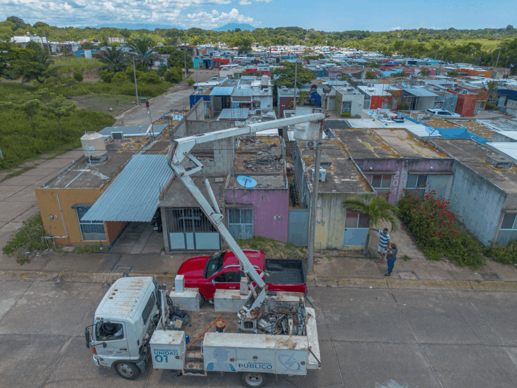 Personal de la Dirección de Alumbrado Público del H. Ayuntamiento de Cosoleacaque, continúa trabajando de manera coordinada para atender los reportes ciudadanos y garantizar calles de la ciudad bien iluminadas.