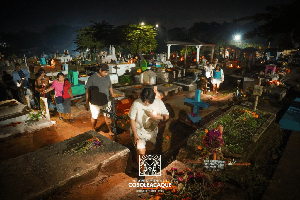 Cientos de visitantes llegan a los camposantos de Cosoleacaque para rendir homenaje a quienes ya partieron: velas que iluminan el camino, flores que adornan cada lápida, música, ofrendas y recuerdos que perduran en el corazón.