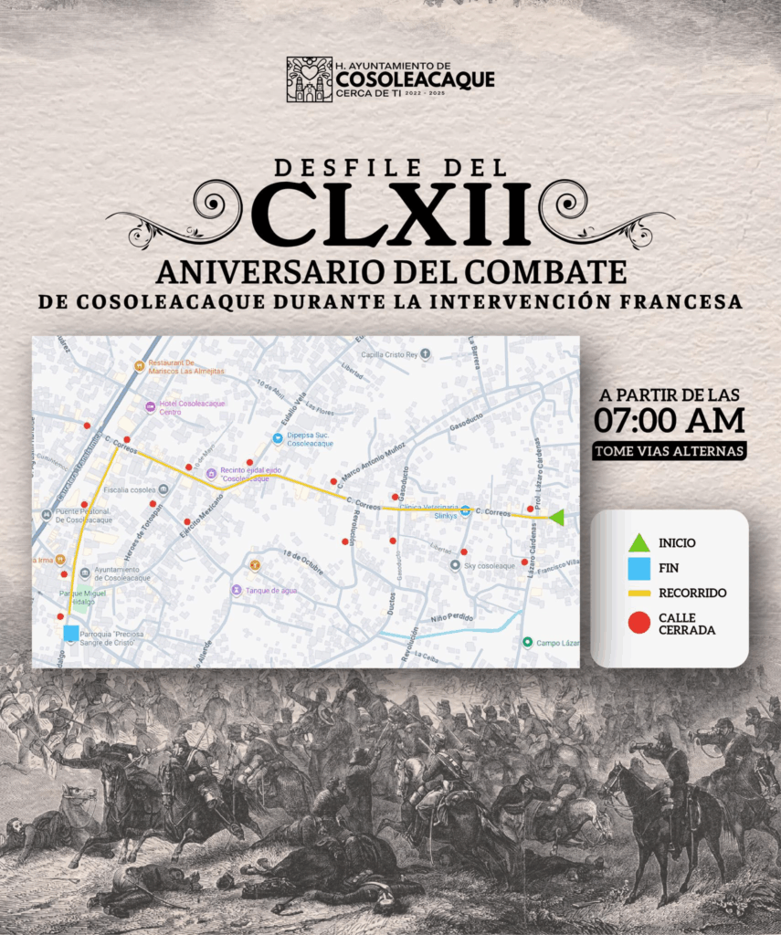 Desfile CLXII Aniversario del Combate de Cosoleacaque durante la intervención francesa.