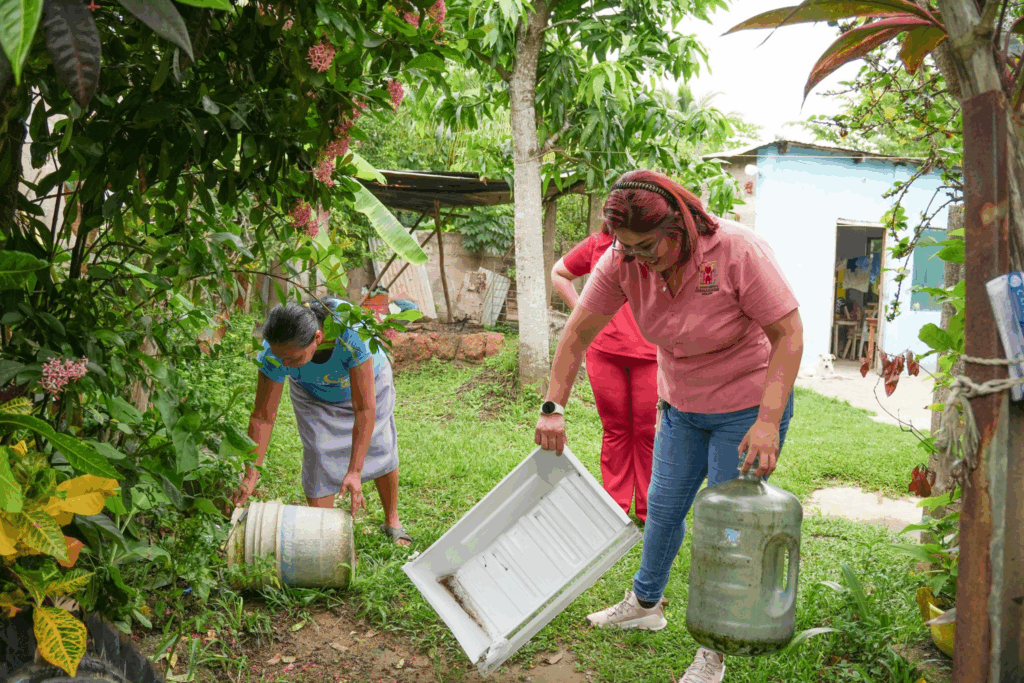 Por un Cosoleacaque libre de dengue, este día, personal de la Unidad Médica Municipal, Limpia Pública y Fomento Agropecuario del H. Ayuntamiento de Cosoleacaque se unieron para llevar a cabo la jornada de eliminación de criaderos del mosquito transmisor del dengue y otras arbovirosis, en el Barrio Primero de la cabecera municipal.