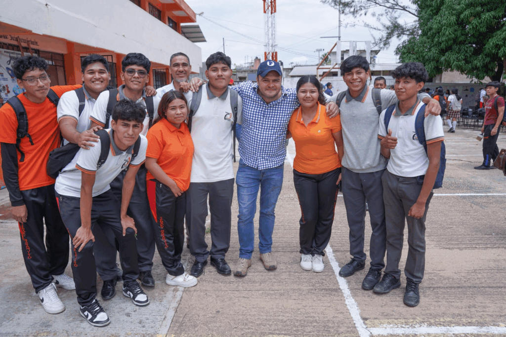 Acompañado de la síndica Blanca Margarita Juárez Martínez, los regidores, Rogelio León Morales, María de los Ángeles Pérez Dávila, José Mario Silva Aulis, Miriam del Rosario Márquez Escobar y Norman Arturo Lagunes Chiñas, el alcalde reiteró que como administración municipal priorizan los apoyos para las instituciones educativas y llamó a los alumnos a aprovechar el esfuerzo que hacen sus padres para que ellos continúen sus estudios.