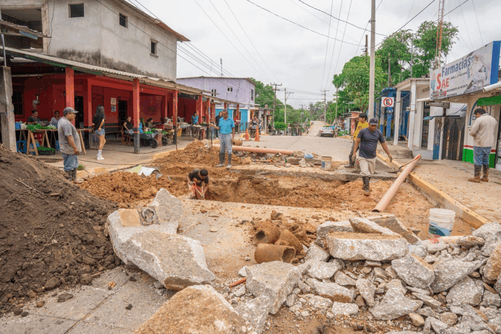Para brindar servicios de calidad, personal de las direcciones de Agua Potable, Drenaje y Alcantarillado del H. Ayuntamiento de Cosoleacaque, realizan reparación y mantenimiento de las líneas en diferentes zonas del municipio.