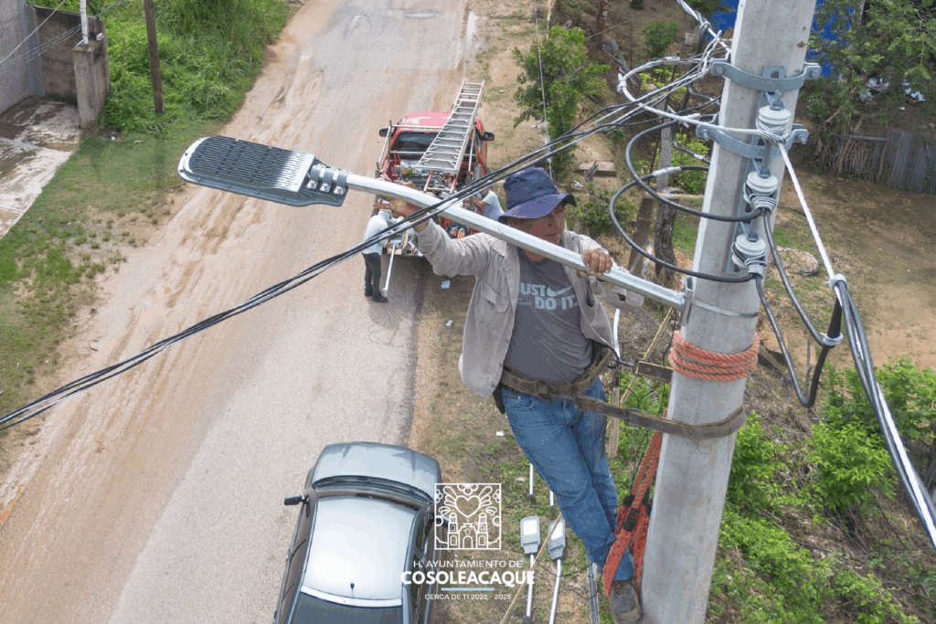 La Dirección de Alumbrado Público del H. Ayuntamiento de Cosoleacaque, continúa trabajando para mejorar la iluminación de la ciudad y brindar mayor seguridad para todos sus habitantes.
