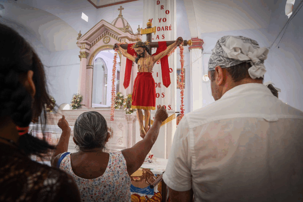 El sonido del tambor, cantos, el olor a incienso, las flores y las ofrendas enmarcaron la bajada de la Preciosa Sangre de Cristo, para dar paso a los recorridos y actividades programadas por la iglesia católica.