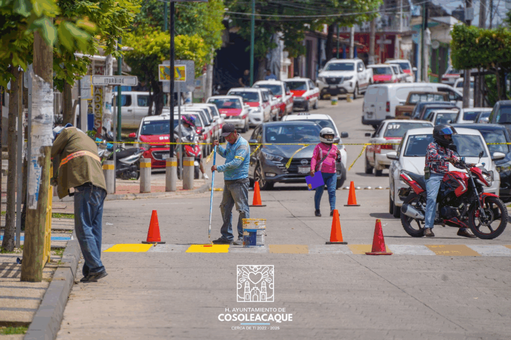 Llevamos a cabo la pinta de pasos peatonales en distintos puntos del municipio, con la finalidad de mejorar la seguridad y el ordenamiento vial.
