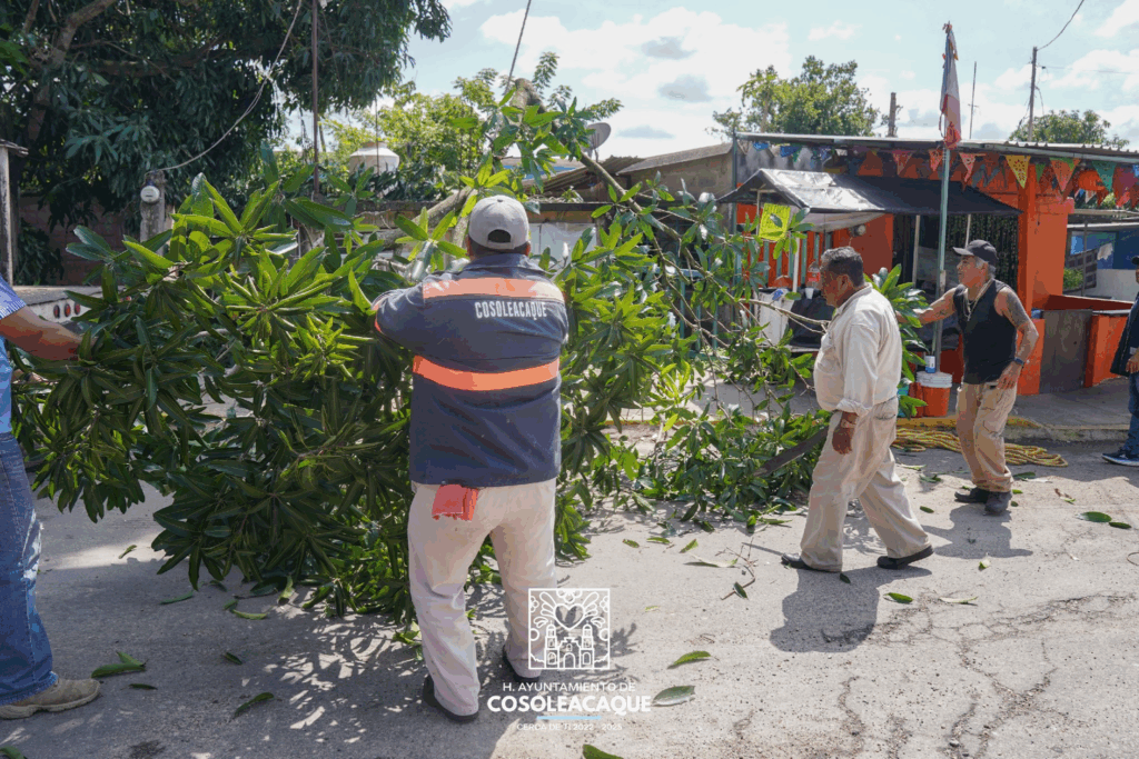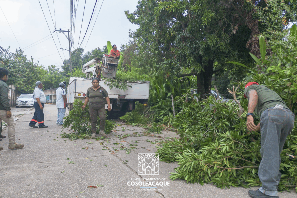 Personal de Protección Civil municipal en coordinación con Alumbrado Público, brinda atención ciudadana de desmorre de árboles en diferentes puntos del municipio, que representan un peligro para la integridad de las personas que viven y transitan a sus hogares, trabajo y escuelas.