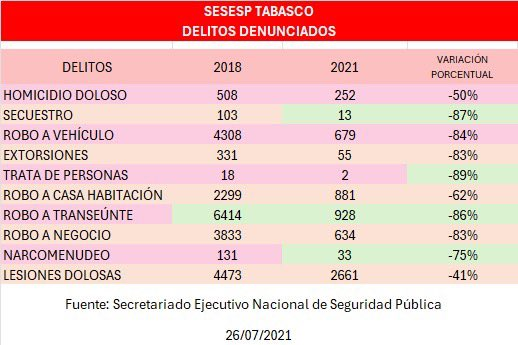 “Fui gobernador de Tabasco desde el 1 de enero de 2019, hasta el 26 de agosto de 2021, cuando el presidente Andrés Manuel López Obrador me invitó a acompañarlo como Secretario de Gobernación. Durante mi gobierno, enfrentamos grandes retos en materia de seguridad, y logramos reducir sustancialmente la actividad delictiva, como muestro en la gráfica adjunta”, dijo.